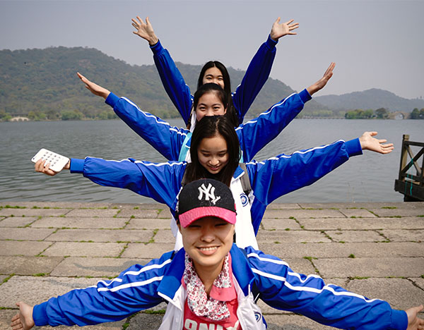 模考一结束,杭州外国语学校剑桥高中的学生就迎来了一段充满欢笑的旅程——春游。早上七点十分,全中心师生在学校操场集合。每个人背着小包,整装待发。这次高二学生的目的地是一个青山碧水的地方:萧山湘湖。