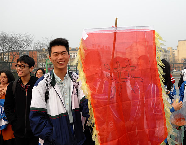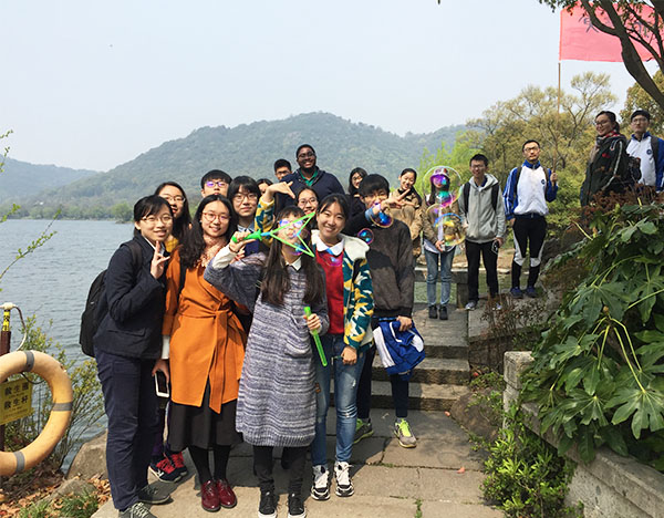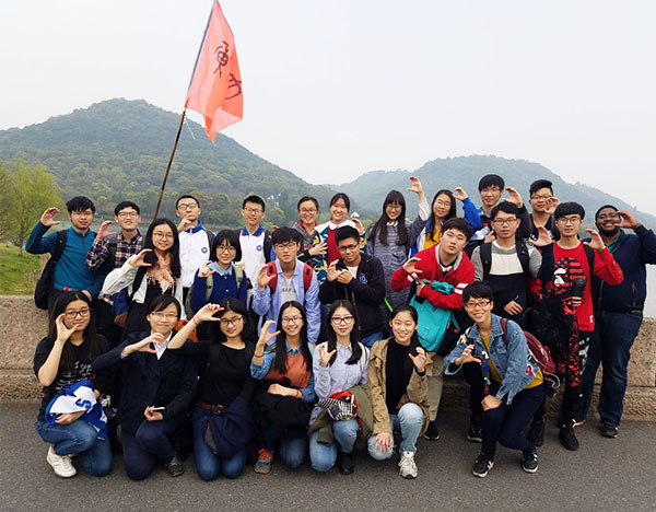 2017年4月1日,剑高高二的同学们终于迎来了进入杭外以来的第一次春游。出发前集合的时候,色彩斑斓的班旗就已点亮了尚未放晴的天空,创意十足的设计既彰显了鲜明的班级特色,又表露了同学们雀跃的心情。我们的湘湖之行,就此拉开序幕。剑高的每个班级都有一名外教跟班同游,共赏春色。我们班的同学们为了表示对亲爱的数学老师Mr. Julien的热烈欢迎,把他的大头照画到了班旗上。Mr.Julien本人表示,头像非常传神,他很满意。在迎风招展的荧光黄大旗下,我们留下了许多有趣的照片。充满童心的同学们还买了泡泡枪和水枪,一路欢声笑语不断。在大预班学长学姐们的指引下,大家在中午顺利到达目的地。不少同学参观了旁边的跨湖桥遗址博物馆。让人难以想象的是,我们脚下这片平静的土地,已经经历了八千年的沧桑巨变。海侵曾经毁了这里的一切,但世界上最早的独木舟和漆器告诉我们,文明仍然在此顽强地生根发芽。在观展的过程中,很多同学在仔细地阅读展板上的英文介绍,杭外人的英文素养和学习兴趣可见一斑。或许平静澄澈的湖水与杂花生树的景色,在杭州这座美丽的城市里并非独此一处,但与朝夕相处的同学和老师携手同游的机会,却是无比难得。从此回忆里又添宝贵一页,恰同学少年,且看好春光。