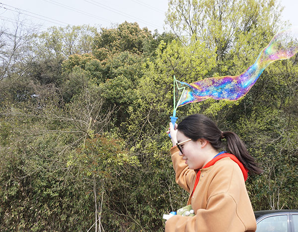 春天是最美好的季节。但今年的春是在倒春寒中来的,好像不会来了却在转角遇到。于是,自然地,虽然做不到海子“面朝大海,春暖花开”的程度,大家也都颇有兴致地参与到了春游的活动中来。艳花鲜草,亭台小道,平时大家眼中再常见不过的俗物也都让大家异常地兴奋。毕竟大家寻求的是和同学还有朋友一起踏青的那份喜悦。不论是桌游还是音乐,大家的那份欢悦如花粉飘散在湘湖公园之中。而这份喜悦会随着春游的结束而消逝吗?想必是不会的,这只是放纵青春的扉页。