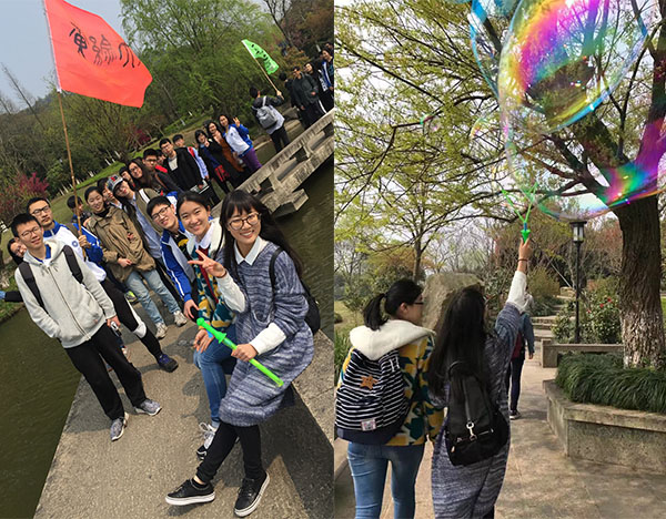 能在愚人节的阳光下与大家一起游湘湖真是特别棒的事。不论是一路上或摇滚或嬉皮的DJ,还是带感的扑克和狼人杀,大家都玩得不亦乐乎。哪怕是大堵车也没能让兴致减去半分。终于到达目的地时,与其说春游,倒不如说是一次环湖远足。在黄综大的大旗下,我们打着“正规军”的名号边聊边走,一路伴随着欢声笑语。果真是春水初生,春林初茂,春风十里,不如C班的你!