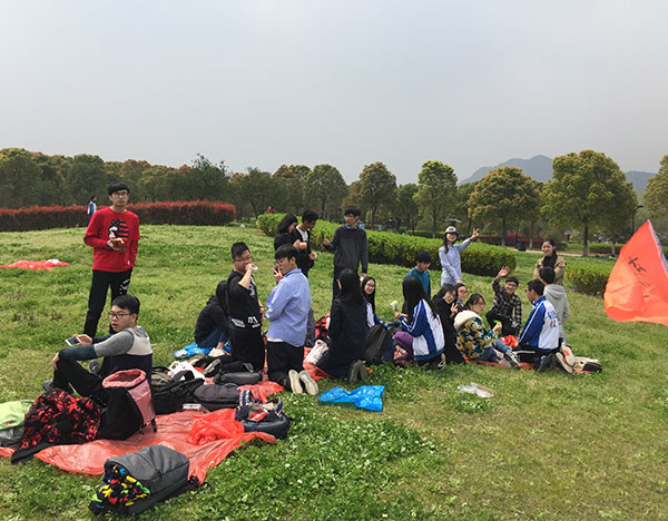 在杭外集合点,我们垫下桌垫,坐成一圈。2A班可热闹了:有玩monopoly的、有集体玩狼人杀的、还有围桌分享零食的,一片欢声笑语。这次春游增强了班级凝聚力,也更让我们领会到了团体活动的重要性。