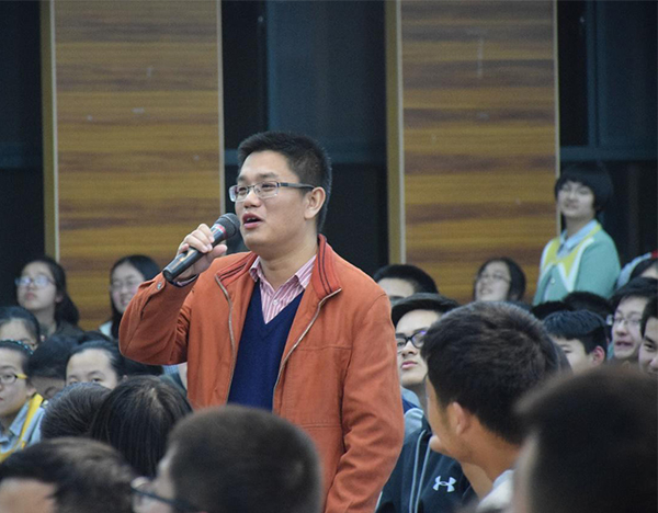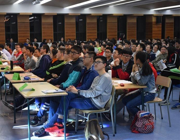 4月13日,科技节活动之一的知识竞赛分为初中组和高中组,分别在二号楼一楼报告厅和一号楼六楼大厅举行,初二、初三各班有20人到场观看,高中组则是全部到场。