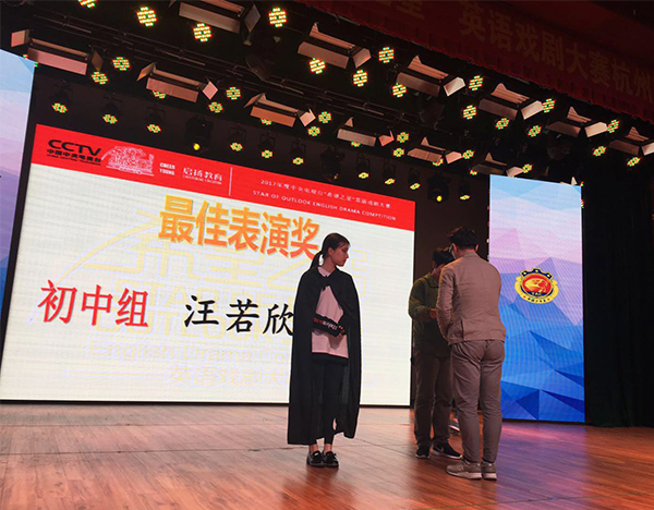 我校学生在2017中央电视台“希望之星”英语戏剧大赛杭州赛区总决赛中荣获冠军