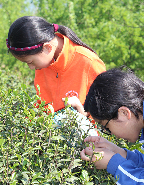 “记住——要摘两叶一芯!”虽然农场老师格外正经话语早已被我们调侃成了“两弹一星”,但为了那飘浮在远方的那虚幻的“‘两弹一星’奖章”,即是比拼四个班采茶的质与量,所有人都宛如游鱼般奋不顾身地跃进了一片又一片绿色间褐色的缝隙之中。