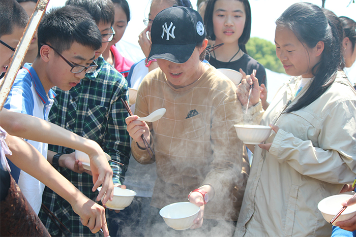 我们虽无岳飞的残忍,却也豪气干云,端着碗打劫食物。袅袅炊烟缭绕于身旁,把本已被晒黑的脸颊更笼上一层阴影。野炊的食材渐渐见底,一锅又一锅的食物烧熟了。休息过后,踏上了归程。