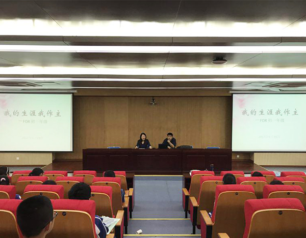 5月15日下午班会课时间,全体初一年级同学在二号楼一楼报告厅聆听了“我的生涯我作主”系列生涯规划讲座的第三场――初一年级专场。