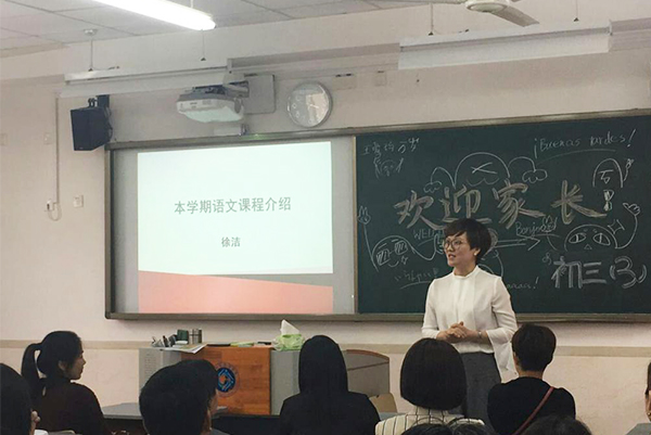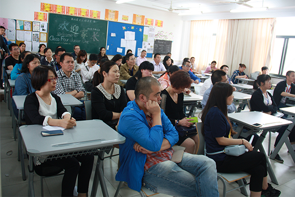 接下来,语文杨文玫老师、数学赵肖东老师、英语B班陆旻老师、物理吴良娟老师分别进行了发言,对这半个学期以来学生们的学科学习以及期中考试做了总结。他们向家长们表明了各自的教育理念、教学方法,并提出了学科学习的建议,并对是否需要上课外培训班这一问题阐明了各种观点。老师们都一致认为,家长们不应该跟风让孩子们上培训班,应根据孩子的自身情况以及今后的打算做出正确的选择。