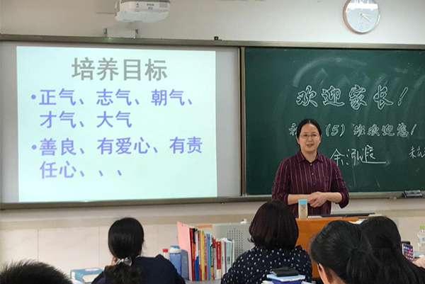 班主任余泓遐老师首先以一句“天生不想学好的孩子是不存在的”作为开题,希望家长们保持对自己孩子的信心。余老师先以班主任的身份,提出了自己对孩子们的培养目标,展示了这两个月来班级内各项活动及学生获得的奖项并将这次期中考试的班级情况向家长做了简短的说明。她希望家长和孩子能够正确看待排名,排名不是唯一,重要的是发现问题、改正问题、提升自我。之后余老师又以化学老师的身份总结了一些孩子们在化学学习方面还存在的问题,并给家长一些孩子们学习上的建议。她希望家长们能够与孩子多多交流,帮助成长。