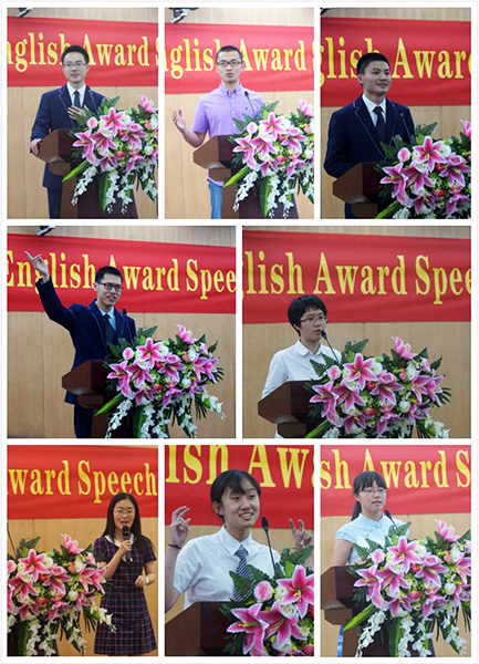 八位演讲者分别是来自大预班的诸葛钊颖、陈雨琳、钱曾一、韩笑、屈波、杨振阳、金骁枫和于赟皓。他们天赋与努力并存,颜值与才华并赋,是根据往届的惯例,从高三年级二百多人中按照英语成绩遴选出来的英语学习佼佼者。
