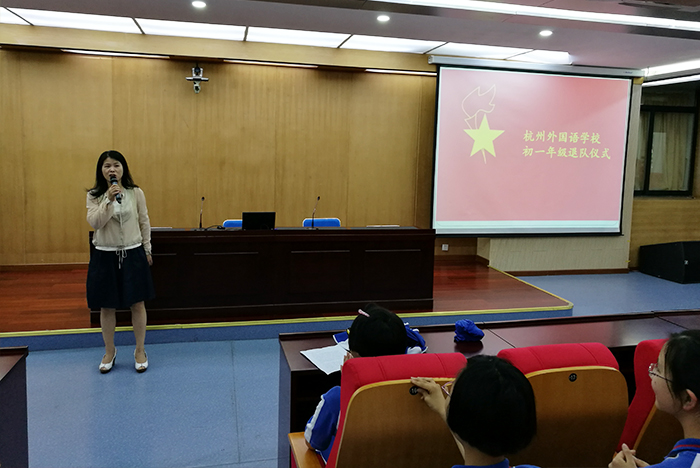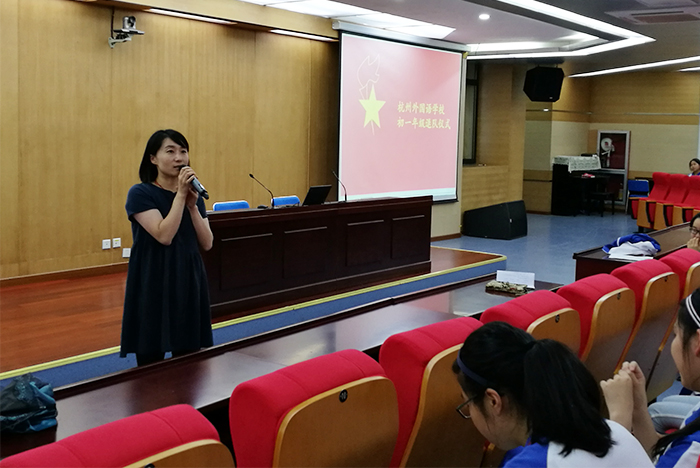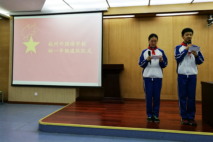 航海的小船经历了短暂的风雨,正靠岸停泊。而在这里,在杭外,我们将重新扬帆起航!同学们,我们胸前的这条红领巾陪伴了我们的整个童年,见证了一个个孩子蜕下稚气,成为少年。而今,我们将要由星星火炬迈向闪闪团徽。感谢杭外——我们亲爱的校园,给予我们这次成长的机会。请同学们全体起立!谢谢大家!