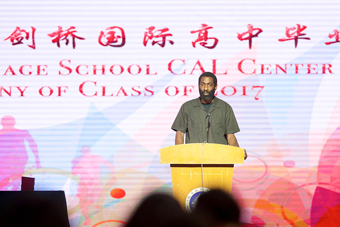 剑桥高中外方学术校长Mr. Thomas在致辞中提到,很欣喜地看到同学们的成长与成熟。同时他也提出了几条警言,希望同学们能铭记:不要因为你更聪明而不向其他人求教;不要因为你见过更大的世面而忽略别人的视角;不要因为你更高大而低看其他人。