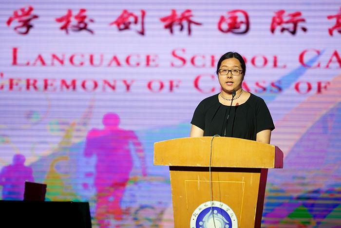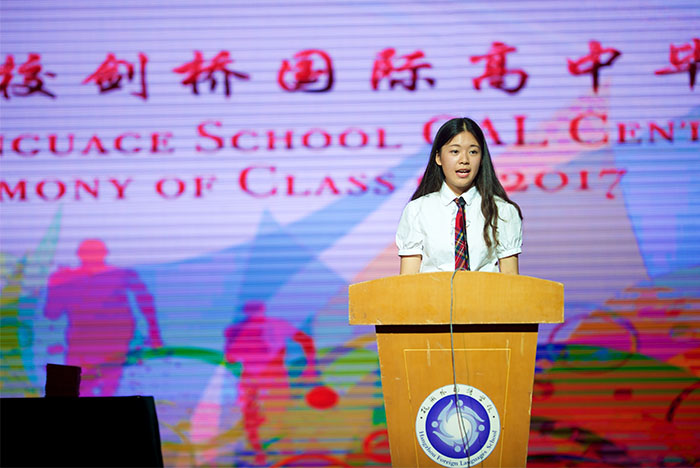 At this moment, we are still HFLS students, but when we step out of the school gate today, we will become HFLS’s alumni. Today is the end our high school life; today is also the beginning of our college life. It’s time to say goodbye. Let us leave HFLS, a place full of laughter and hope, with laughter and hope. I wish you all the best in your future!