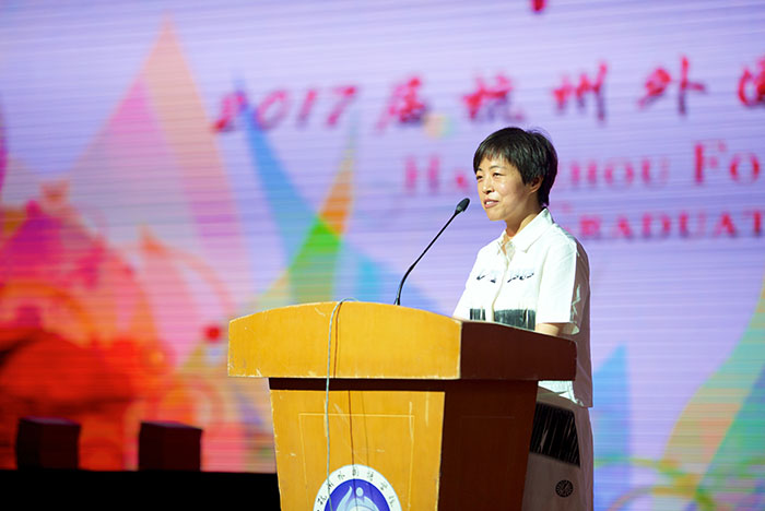 有一首诗写得好:“不论你走得多么远,你永远也走不出我的心,这如同夕阳中的树影,无论它多么长,也永远连着树的根。”希望大家牢记自己是一名中国人,是具有中国灵魂、世界胸怀的社会主义合格建设者和可靠接班人。希望大家牢记自己是一名杭外人,你们用大气、睿智、阳光和自信为杭外增光添彩,杭外也将永远张开怀抱,欢迎她的儿女们常回家看看!