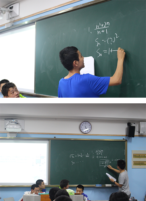比赛的过程可以用一个词来形容——疯狂。参赛选手进行着头脑风暴,争取在有限的时间内完成难度极高的大题。在每轮题目的间隙中,社员们也疯狂地进行着批改与讲解的工作,并及时发下新的答题纸。整个比赛十分紧凑。数学比赛也不是做完题就可以了,当遇到选手们不懂的思路环节时,讲解的同学会停下来,脱离考试的状态,与参赛者一起讨论重难点。