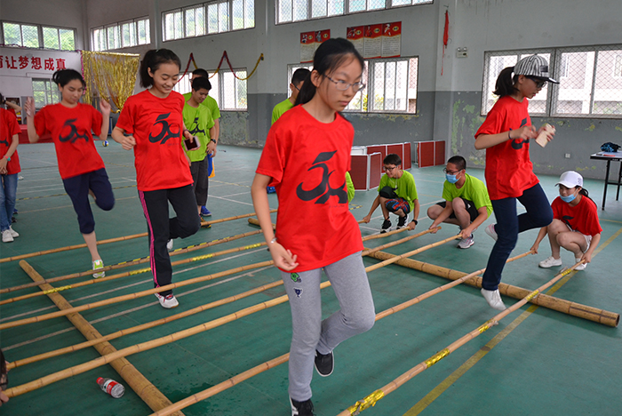 “开开合合,开开合合……”随着大家舞蹈的渐入佳境,小老师们又变化出了各种花式竹竿舞,这回大家都跃跃欲试,主动跳了起来。一下午就在欢悦的踏歌声中渡过,杭外同学和莫干山中心学校同学之间的友谊之手也在越拉越紧。傍晚时分,两校的同学们还在手电光里完成了一场友谊赛。