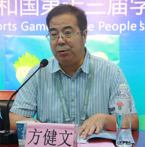 我校校长、本次中学男排竞委会主任方健文在致辞中向来自全国各地的运动员、教练员、裁判员和来宾表示热烈的欢迎,对各级领导、部门的支持、关心和指导表示感谢。方校长向与会者介绍了学校的办学特色及近年来取得的办学成果。方校长强调学校十分重视体育工作,始终坚持抓群体体育活动,采用体能与专项技能、课内外相结合的模式积极开展体育教学及各类体育活动。