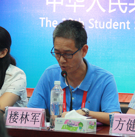 我校副校长、本次中学男排竞委会执行主任楼林军就筹备情况及赛事安全等注意事项向与会者作了相关介绍。楼校长表示,自我校2015年接到承办任务以来,学校高度重视,并成立专门的组织机构,制订详细的筹备工作方案,各职能部门分工明确,全校师生员工积极配合,团结协作,提前完成专项设备及重要器材的采购安装调试工作。筹备期间,我校多次召开各类会议,接待各级有关领导和部门来校指导。为确保本次中学男排比赛顺利举行,相关部门人员更是利用暑期休息时间,全身心地投入到筹备工作中,包括安全保卫、医疗卫生、信息技术、环境整治等,积极营造浓厚的比赛氛围。