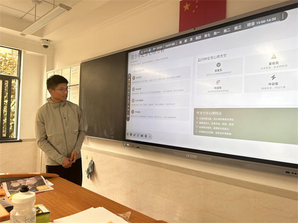 随后,班会进入“青少年常见违法行为”板块。主持人结合现实生活中的实际情况,向同学们介绍了青少年中较为常见的几类违法行为,例如因冲动引发的打架斗殴、因贪念产生的盗窃行为,以及在网络空间中传播谣言、参与诈骗等不当行为。通过具体情境的讲解,同学们更加清楚地了解到这些行为可能带来的严重法律后果,也更加深刻地理解到遵守法律的重要意义。