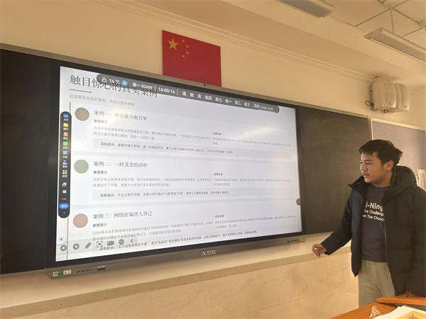 在“真实案例警示”环节,主持人分享了几个典型案例。例如,有学生因为一时冲动参与打架斗殴而受到法律处罚,也有人因沉迷网络游戏而走上盗窃的道路,还有人因贪图小利参与网络诈骗活动。这些真实发生的案例让同学们深受触动,也引发了大家对“冲动行为”“不良诱惑”等问题的深入思考。