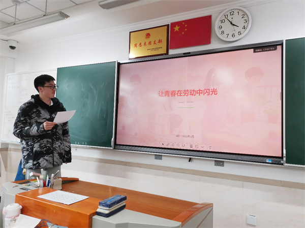 为引导同学们树立正确劳动观,在实践中体会劳动价值,3月9日,高二6班开展了“让青春在劳动中闪光”劳动实践主题班会。本次班会由徐一恺同学主持,共设置四大环节,通过交流分享同学们在寒假劳动实践中的优异表现,让劳动理念深入人心。