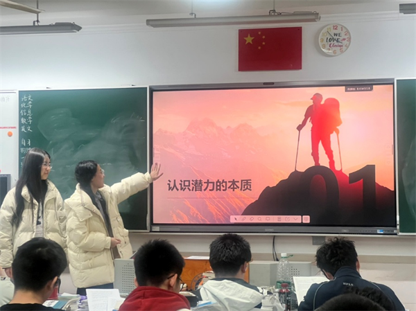 班会上,主持人章家瑞和潘昕越首先为大家阐释了潜能的定义:潜能是每个人与生俱来、尚未被发掘的能力,并非少数人的天赋,而是藏在每个人身上的待开发宝藏。无论成绩高低、性格内外向,每个人都拥有不可估量的潜力,关键在于是否愿意尝试、能否坚持突破。
