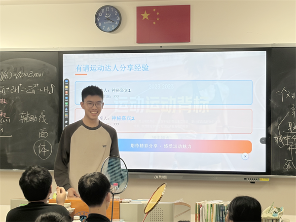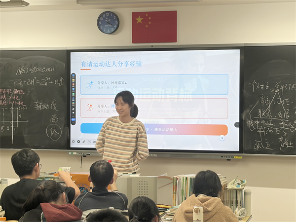 随后,班级几位运动达人分享了各自的锻炼心得。沈可睿讲述了自己在运动会赛场上的精彩表现,更是提倡同学们在课余时间多去操场运动、踢球;沈希越分享了参加校运会的心路历程,从最初的“完成任务式的参加”,到最终圆满完成比赛取得优异成绩,靠的就是日复一日的坚持。真实的故事赢得了同学们的阵阵掌声,也激发了大家参与运动的热情。