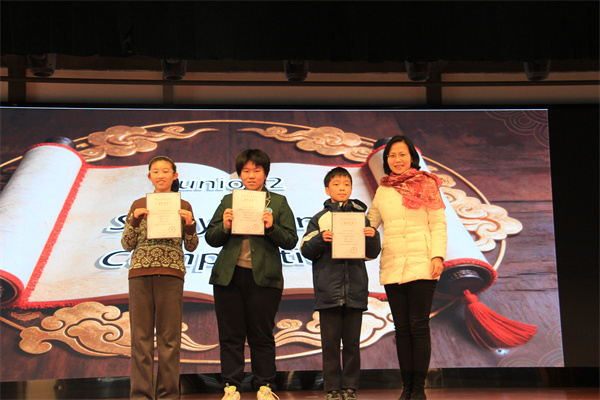 This competition was truly amazing! Before I stood on the stage, I had been nervous for almost two weeks because I didn’t have much confidence. Thanks to the encouragement and help of my English teacher, Ms. Yu, and my classmates, I was able to overcome my fear. I also learned that practice makes perfect and that courage comes from the heart.