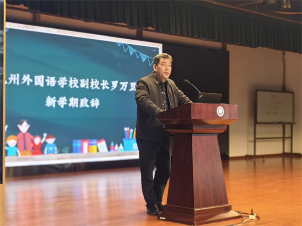 副校长罗万里首先致辞。罗校长对同学们新学期学习生活提出三点期望:做热爱生活、永葆鲜衣怒马青春朝气的活力少年;做脚踏实地、快马加鞭走向奋进之路的勤奋少年;做探索未知、有天马行空创新思维的求知少年。罗校长祝愿同学们能掌握自己的节奏,在学习这场耐力跑中稳步前行。