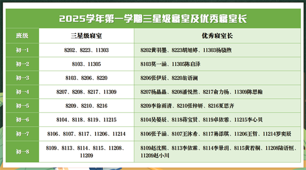 大会对上学期三星级寝室进行了表彰,年级组长张萌倡导大家爱护集体环境,共建美好宿舍。她还表扬了上学期期末离校日为班级卫生做贡献、主动留下大扫除的同学,并鼓励同学们向他们学习,积极参与离校大扫除,共同维护校园环境。