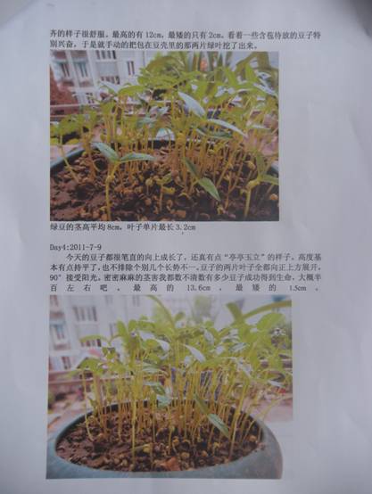 《关于植物生长的系列实验报告》 《绿豆芽是否需要阳光的实验报告》 《关于植物生长的观察日记》 |