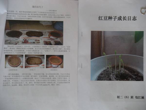 《月相观察日记》 《关于黄豆绿豆种子萌发的探究》 《关于红豆绿豆在土壤与水中生长情况的观察》 《科学观察日记》 |