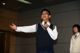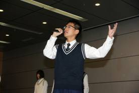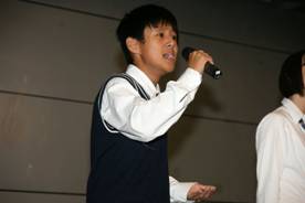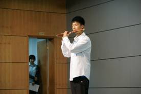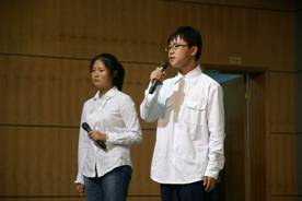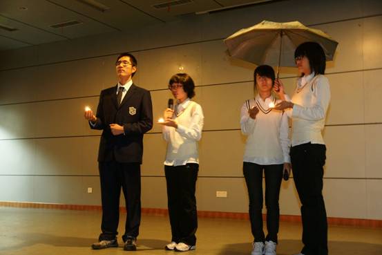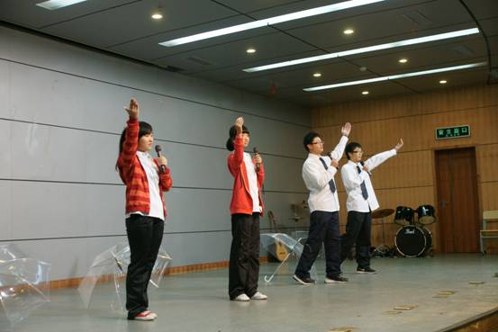 而诗会最大的亮点就是原创诗部分。我们手执笔杆,书写下青春岁月中的灿烂千阳。我们质疑——为何我们只看到新世纪带来的契机,却记不起自己血液中流动着一股历史需要铭记?我们迷茫——人群如水流逝,影子被践踏凌乱,不知他们来自何方,又将去向哪里?我们自信——明天也许有晴有雨有淡淡的雾气弥漫,明天也许有悲有喜心底残存着懵懂不安,但这属于青春的季节,你我的日子一定是《天天天蓝》!